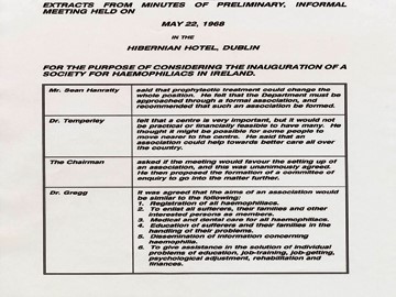 The Irish Haemophilia Society was founded in 1968 by members of the medical profession, people with haemophilia and their families and friends who felt the need to provide support and advice for members and to improve the quality of life for people with haemophilia.